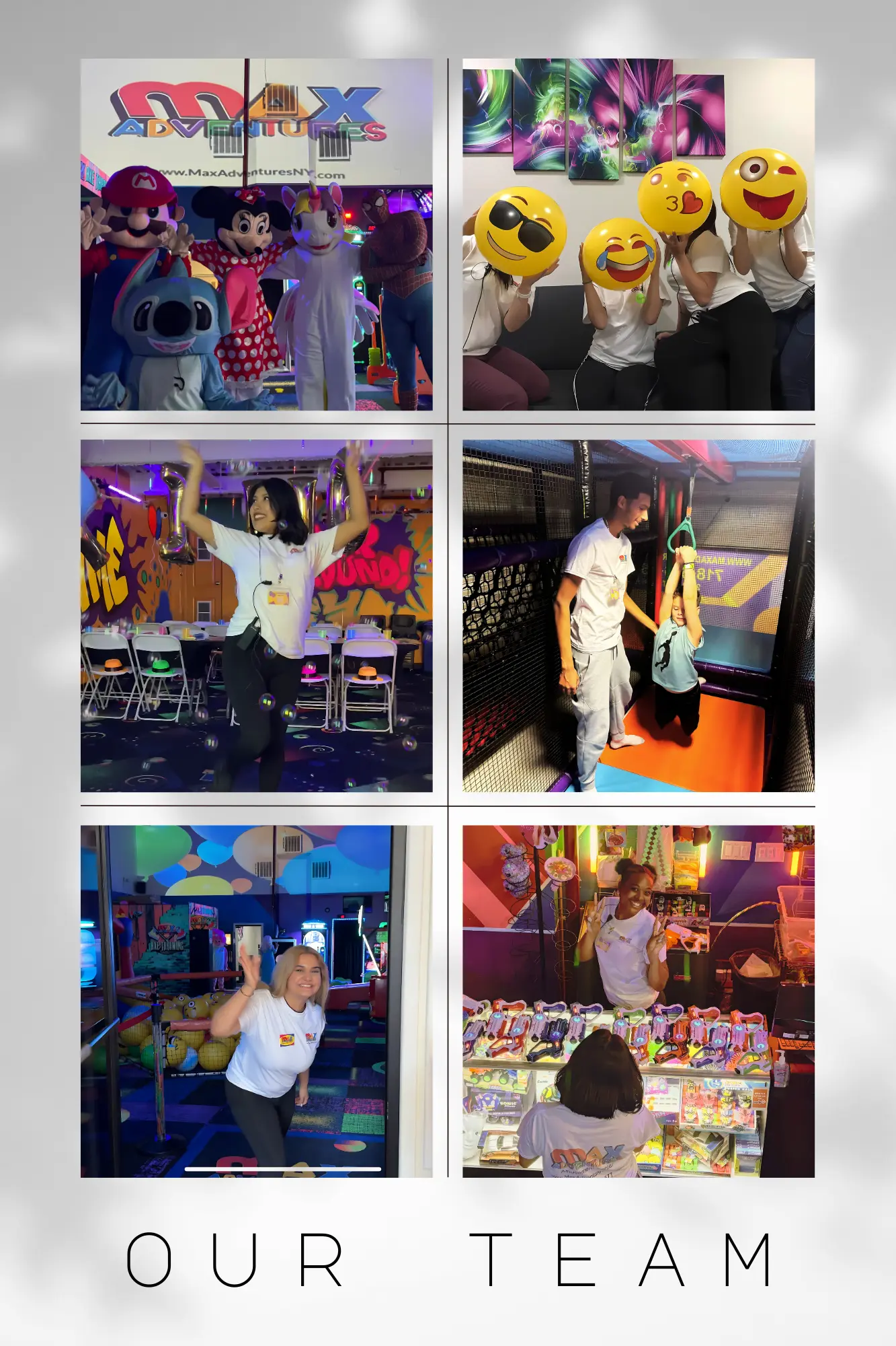 Meet the best team in town. Highly trained, friendly and energetic, our party team will bring safe fun, excitement, and top-of-the-line customer service to you and your children. They will make sure your kids birthday party will be an unforgettable one. They all have one thing in common: They, too, like to have fun. Their personalities will have you coming back here. They are the best! They are the team of Max Adventures!